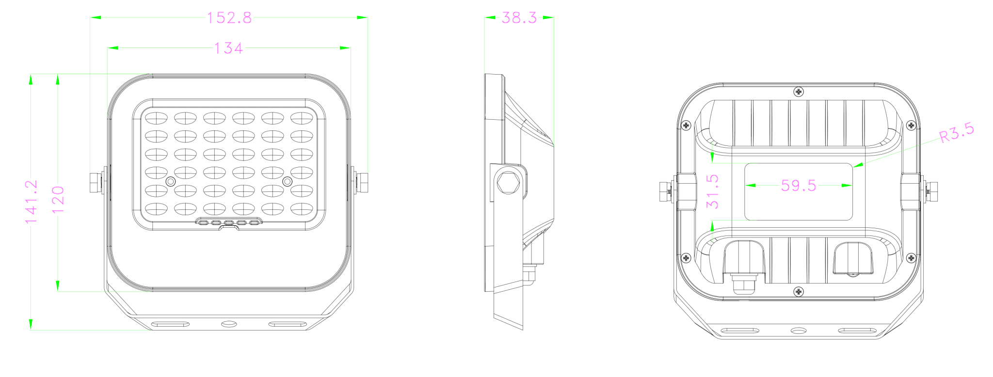 Lampe : 152,8 x 141,2 x 38,3